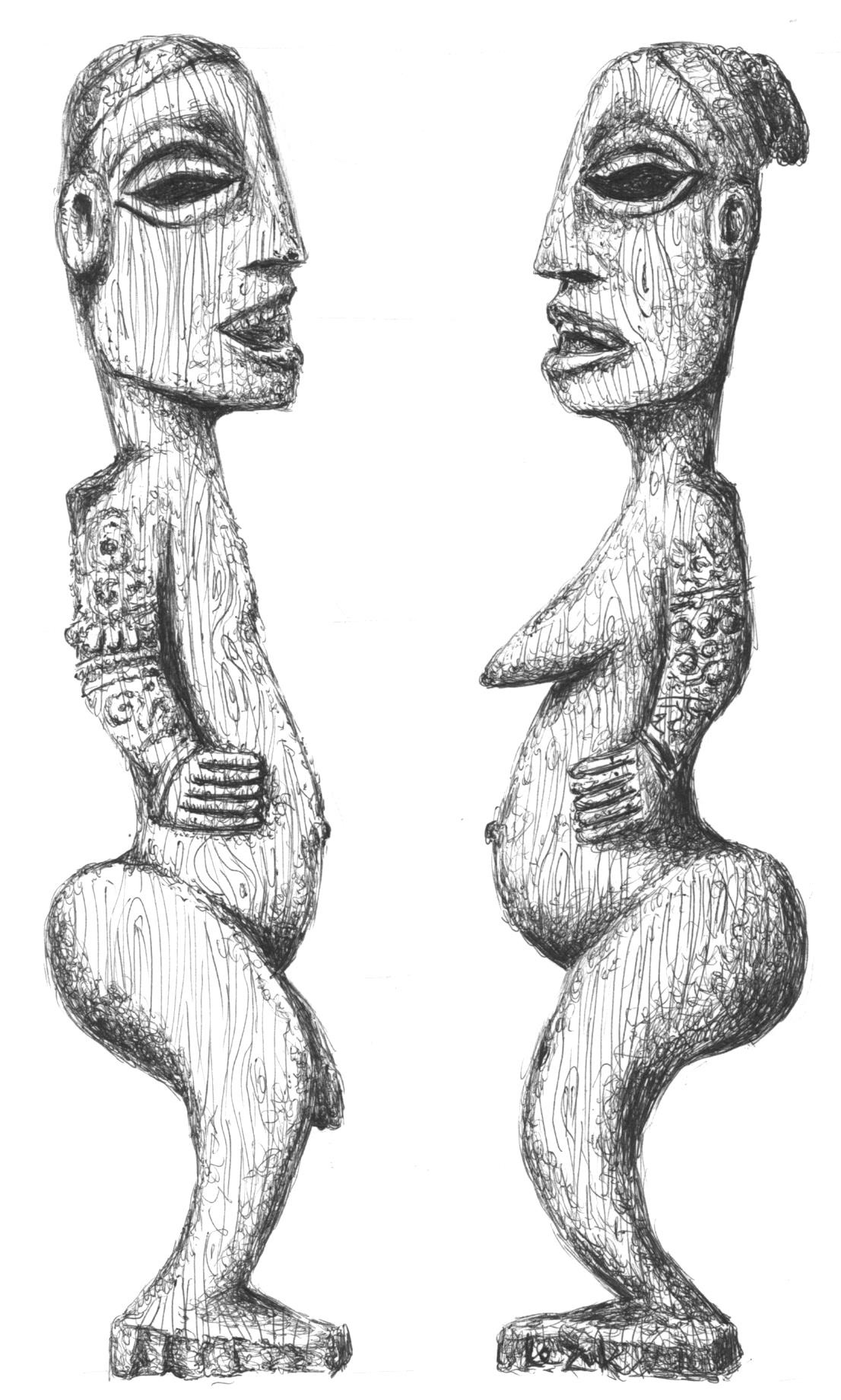 Papuaskie dziewczęta przechodzą za to bolesny proces tatuowania twarzy za pomocą węgla drzewnego (popiołu) wcieranego w tysiące nakłuć wykonywanych kolcami roślin. Po pomyślnej inicjacji dziewczyna jest uznawana za dorosłą, co symbolizuje przejście ponad leżącą na ziemi matką lub babką oraz dary składane jej przez wszystkie kobiety plemienia.